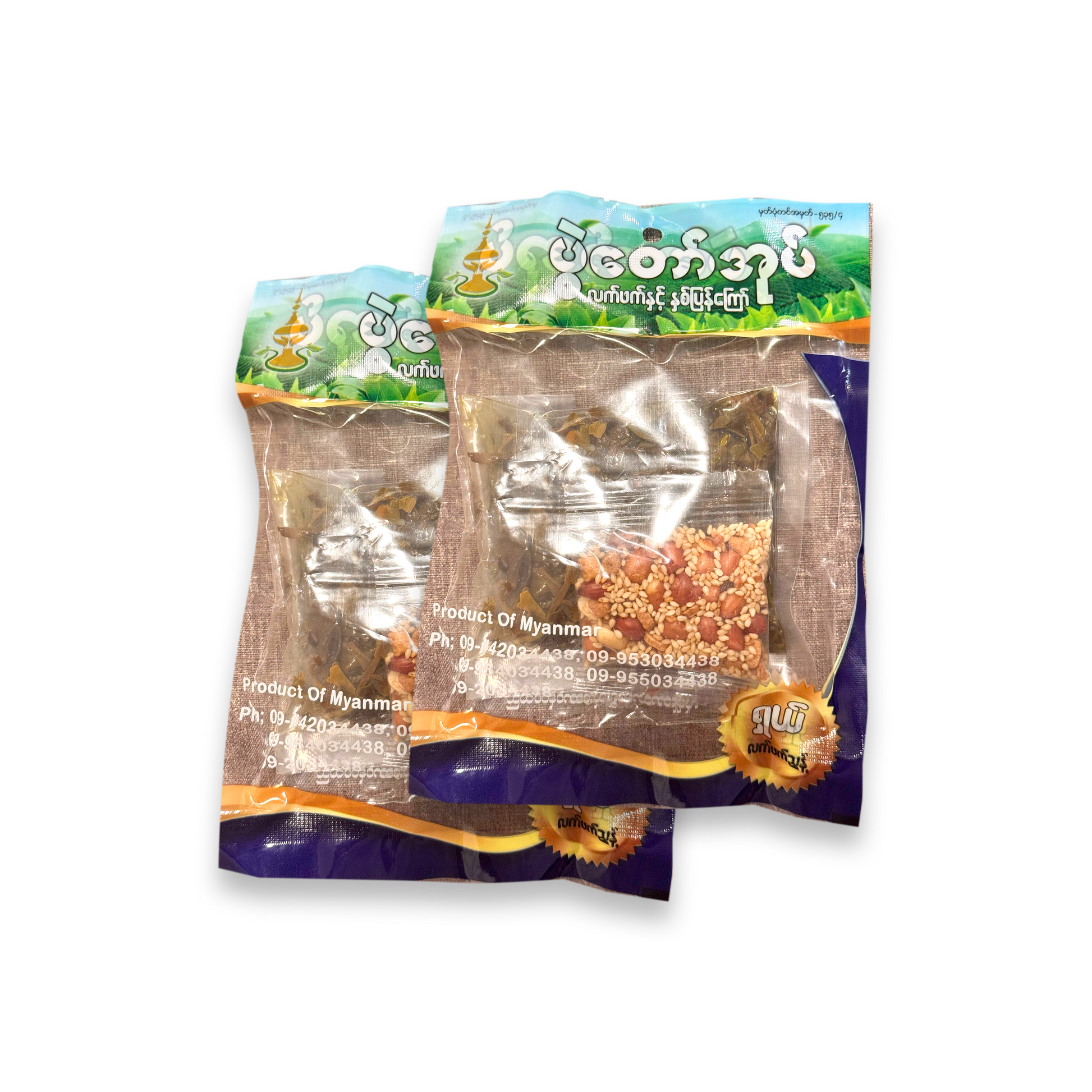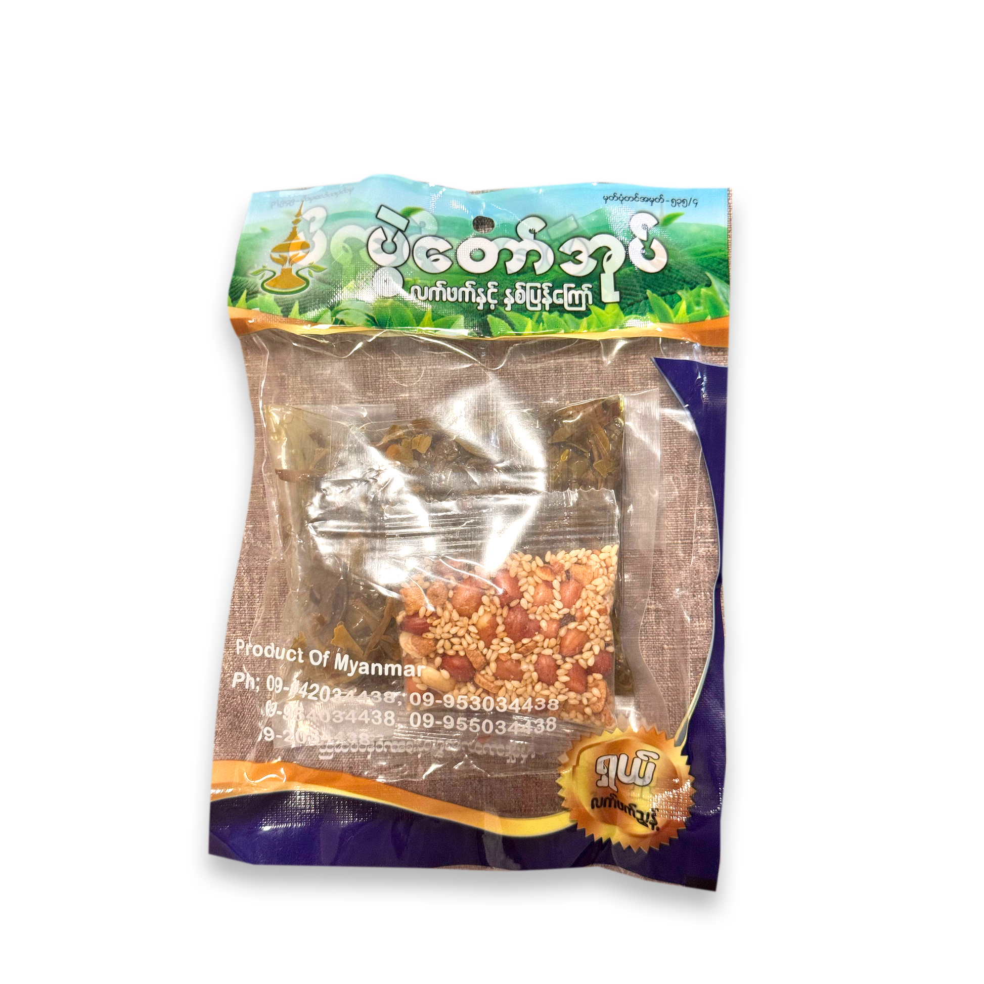 🥗 Laphet Thoke (Tea Leaf Salad) – Mix with crispy beans, nuts, garlic, tomato, lettuce (optional), and lime